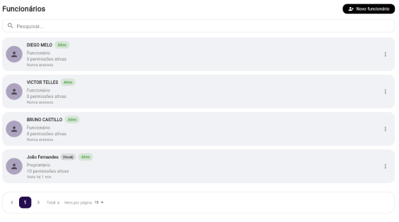 Cadastre seus funcionários, dê acesso individual ao sistema e controle exatamente o que cada um pode visualizar e fazer dentro da sua operação.